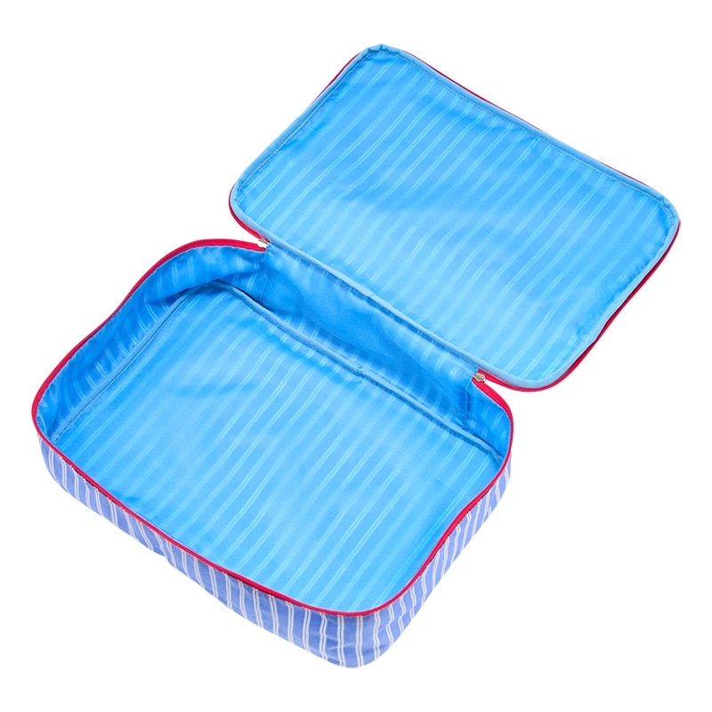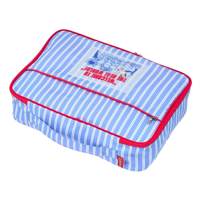 PLAZA限定!さわやかなストライプ柄がかわいいPEANUTSのMサイズストレージケース。スーツケースの中でかさばる衣類を整理整頓できて、面倒な旅のパッキングの味方になること間違いなしです!