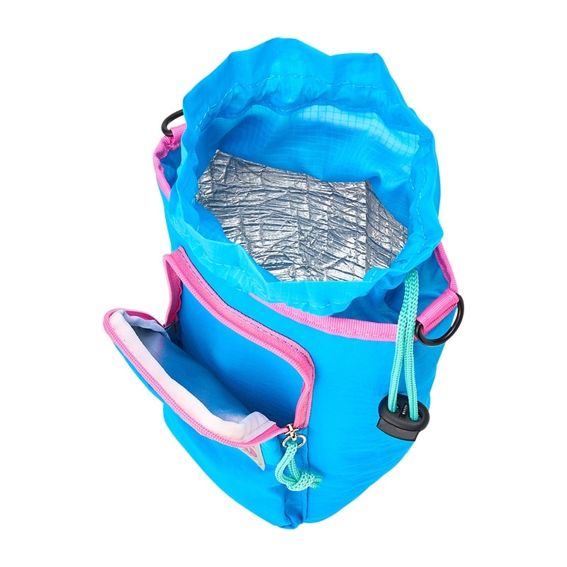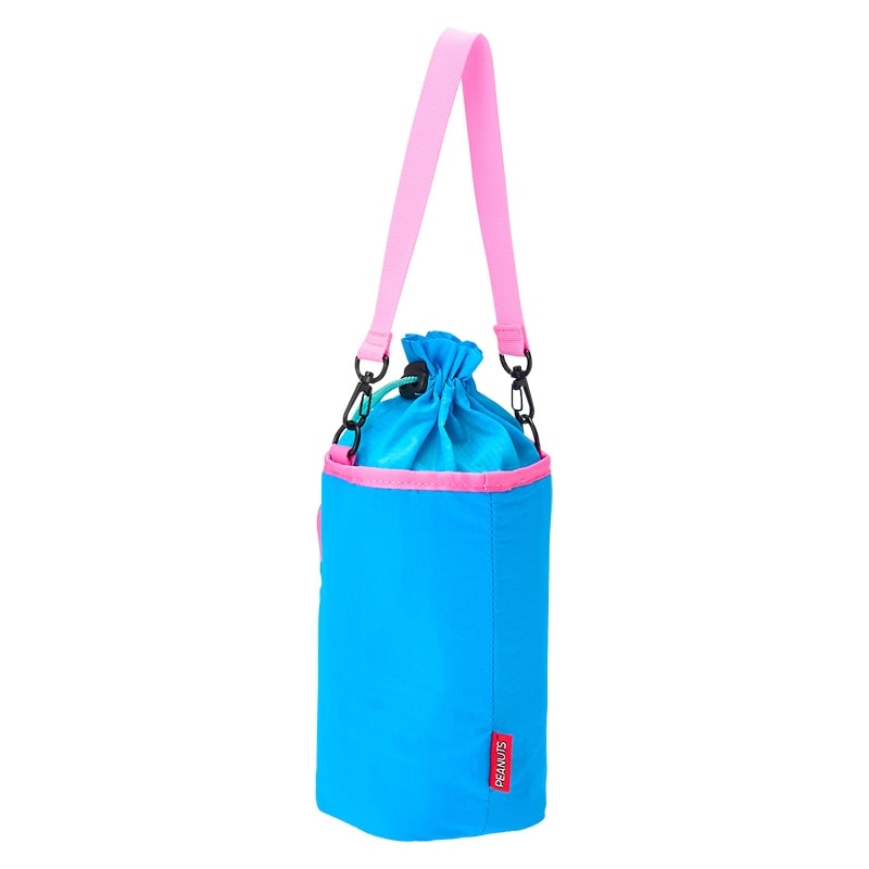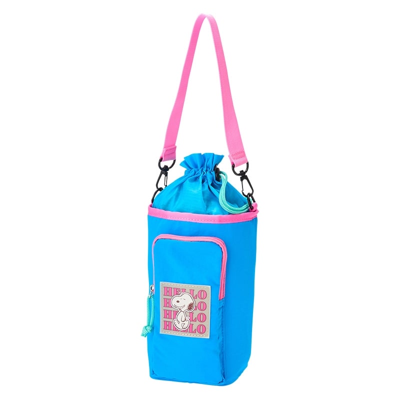 PLAZA限定!スヌーピーのデザインがかわいい、内側にアルミ蒸着シートを使用しているボトルホルダー。外側に便利なジッパーポーチとハンドストラップ付き。