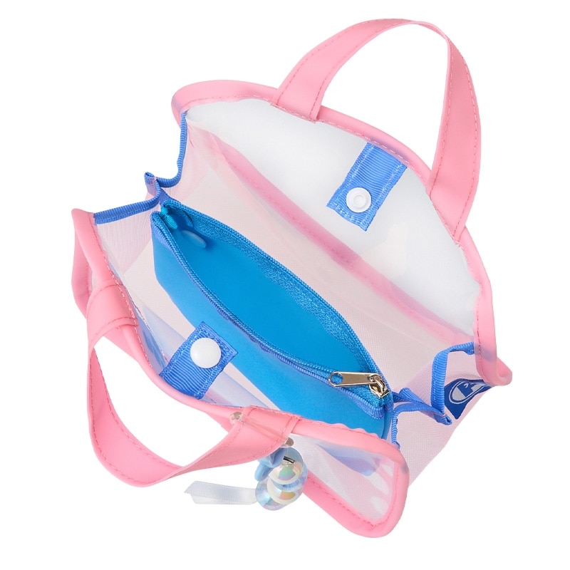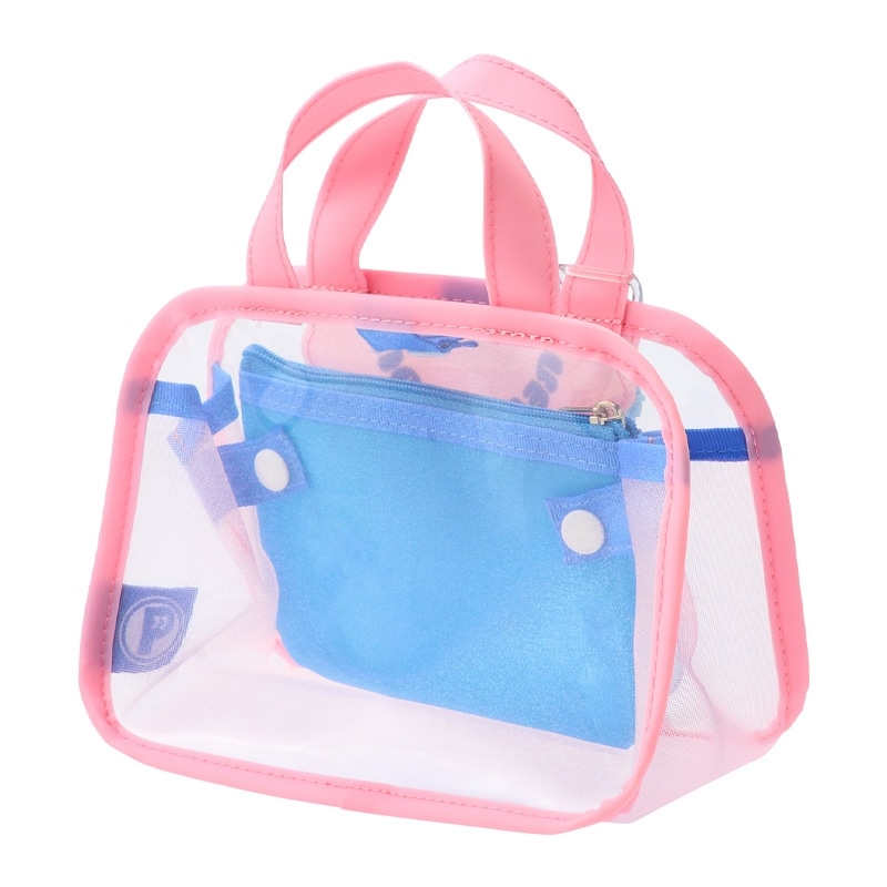 大きめのパールチャームがかわいい横型スパバッグのSサイズ。詰め替えボトルや化粧小物収納に便利です。中身が見えるクリアボディに加え、内側にはファスナー付きのインナーポーチもセットされていて、整理しやすさも◎。