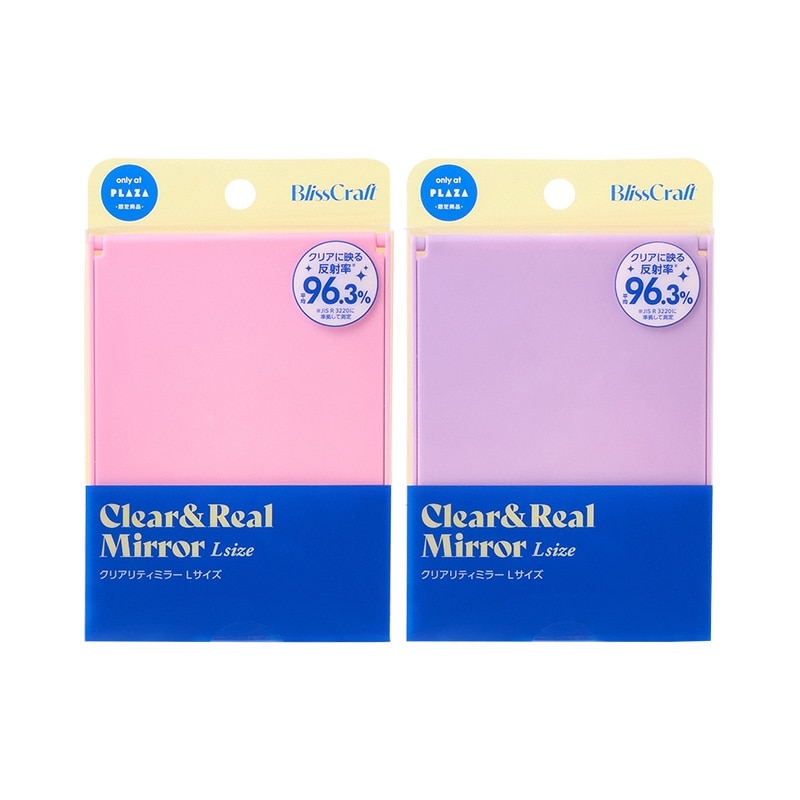 PLAZA限定!平均反射率(※) 96.3%で肌をありのままにクリアに映し出す、銀引き製法のクリアリティミラー。リアルな肌の状態がわかるので、厚塗りを防いでメイクがキレイに仕上がります。使い勝手が良くバッグに入れての持ち運びもしやすい、105mm×140mmの扱いやすいサイズ。ライトピンクとライトパープルの2色展開。