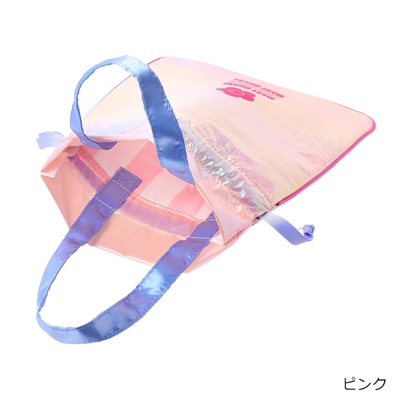 PLAZA限定!「MARY QUANT(マリークワント)」の巾着ポーチ。上品な光沢があるシャイニー素材でとってもキュート♪コスメやアクセサリー、ガジェット類など小物の整理に便利で、旅行用の仕分けポーチとしても活躍してくれます。内側のストライプがポイントです。