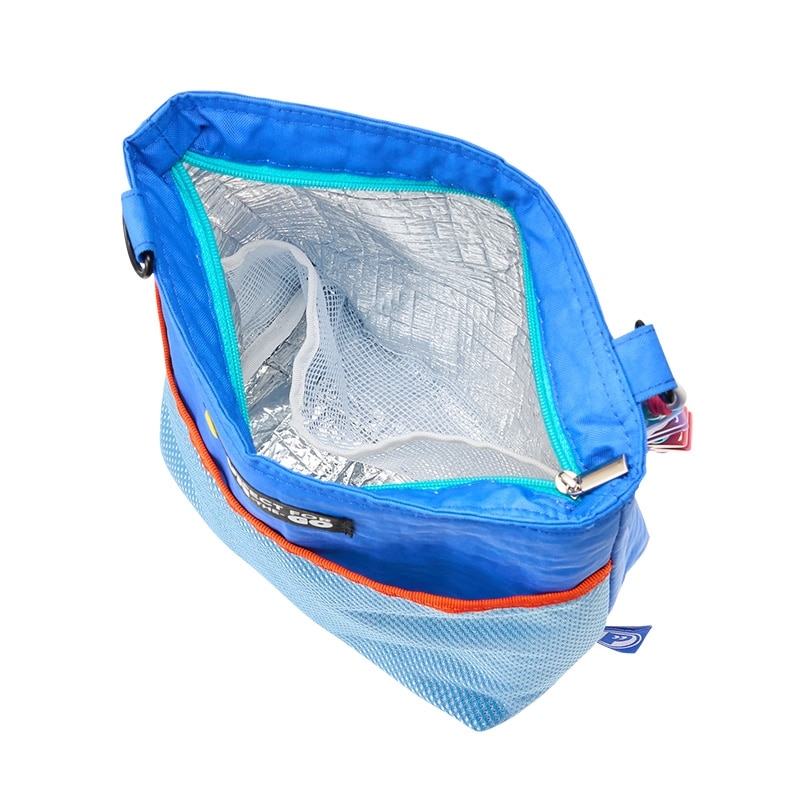 ショルダーストラップのついたランチポーチ。内側にアルミ蒸着シートを使用しているので、保冷剤を入れれば冷たさをキープできます。お弁当箱やペットボトル入れとしてはもちろん、サブバッグとして日常使いにもおすすめです。