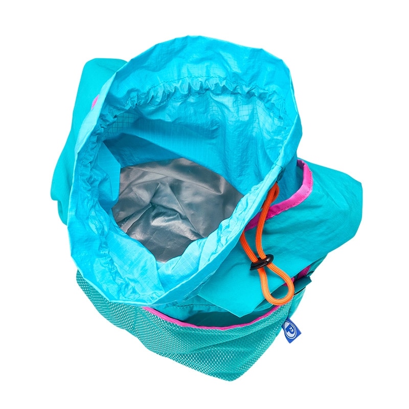 本体が巾着仕様でたっぷり入るランチバッグL。内側はシルバーコーティングになっており、保冷剤用ポケット、外ポケット付き。お買い物にもおすすめです。