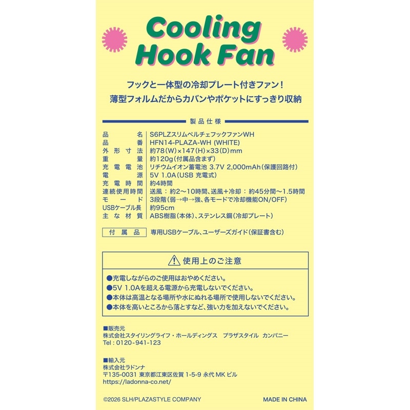 PLAZA BASICS 冷却機能付き スリムフックファン