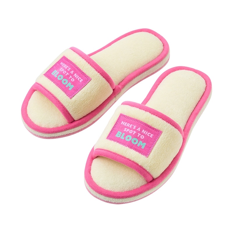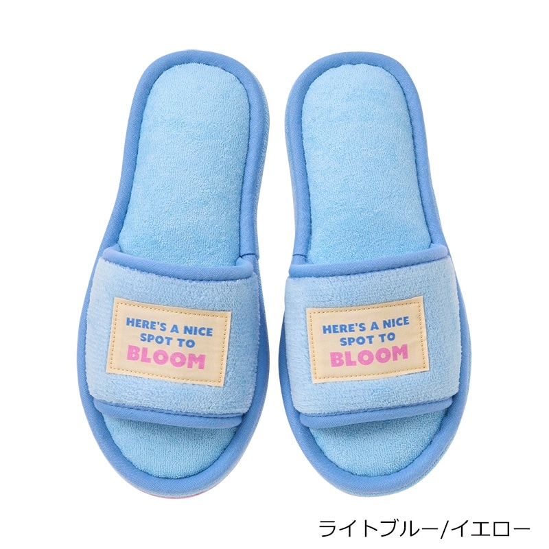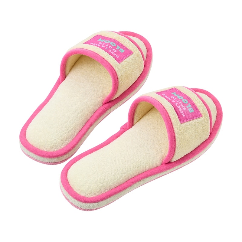 ふわふわパイルが気持ちいい、季節を問わずに使えるオープントゥのルームスリッパ。洗濯機で丸洗い可能なので衛生的。
