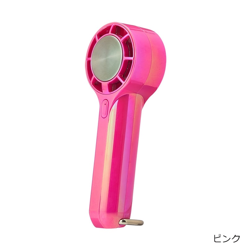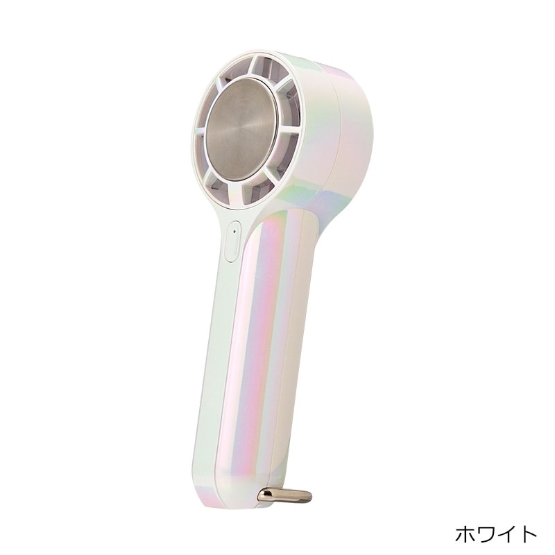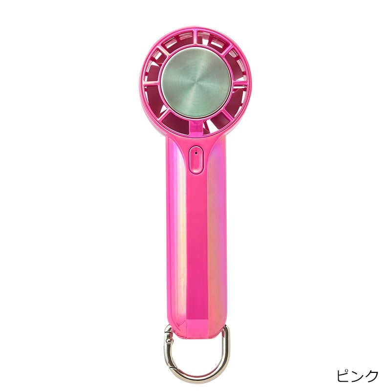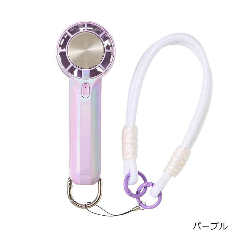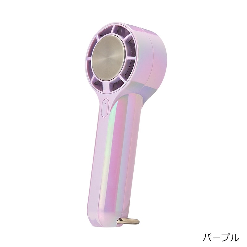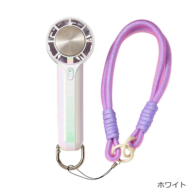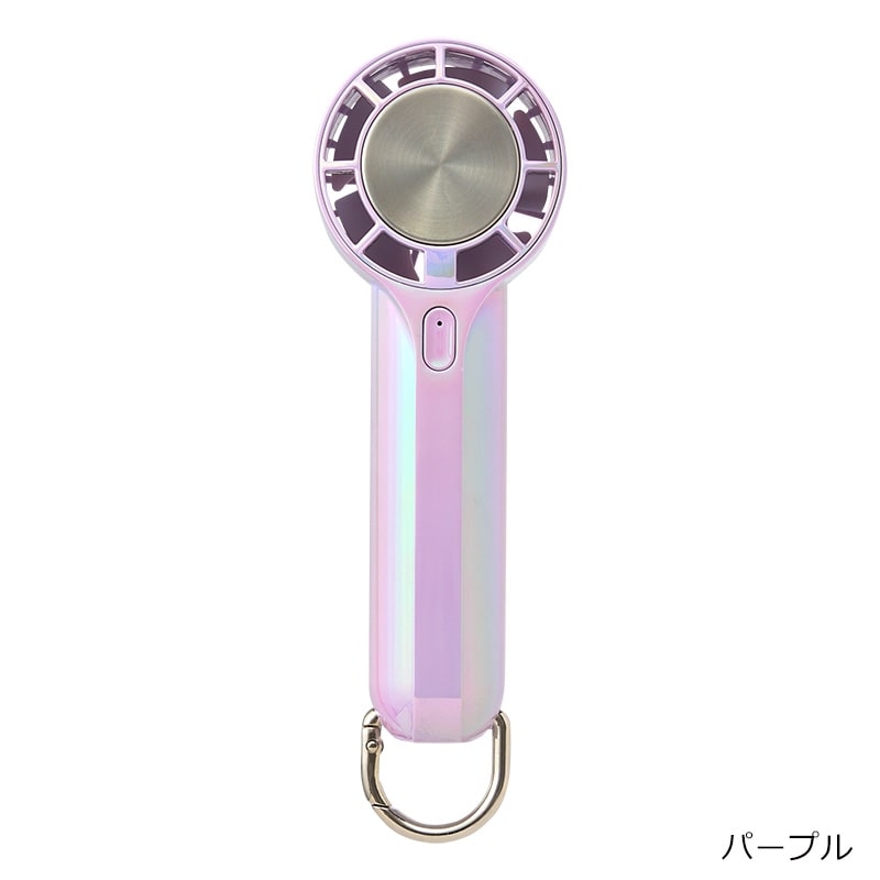 オーロラカラーが涼しげでかわいい、ハンドストラップ付のミニハンディファンです。手のひらにすっぽり収まるサイズながら、3段階風量切り替えのパワフルな送風が可能。ハンディファンの送風に加えて、冷却プレートを首元や手首などにピンポイントに当てることでダブルで涼しさを感じることができます。付属のカラビナは、バッグやベルトループに掛けて持ち運べる他、スタンドにもなる2WAY仕様。さらに、長さが調整できるハンドストラップ付きなので、使用シーンに合わせて色々な使い方が楽しめる便利なアイテムです。