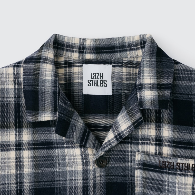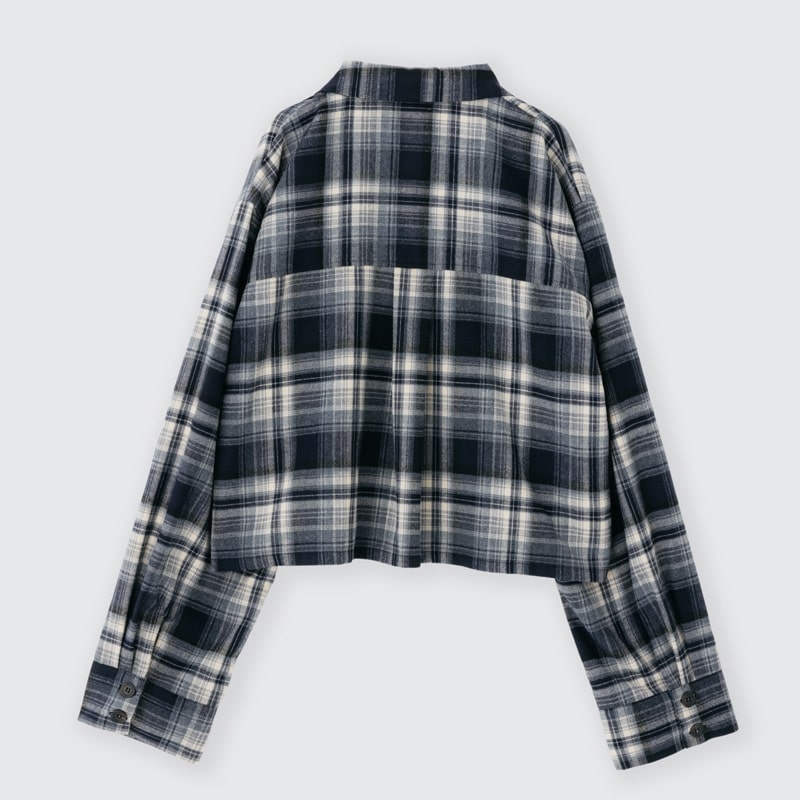 Lazy styles レイジースタイルズ クロップドチェックシャツ ネイビー