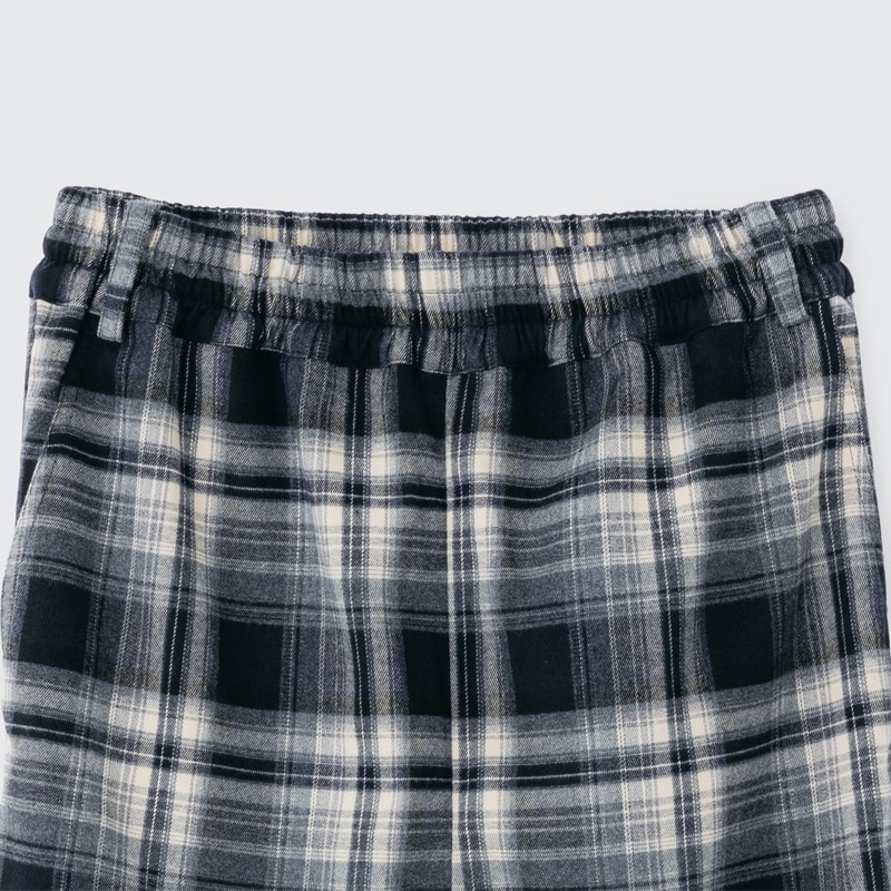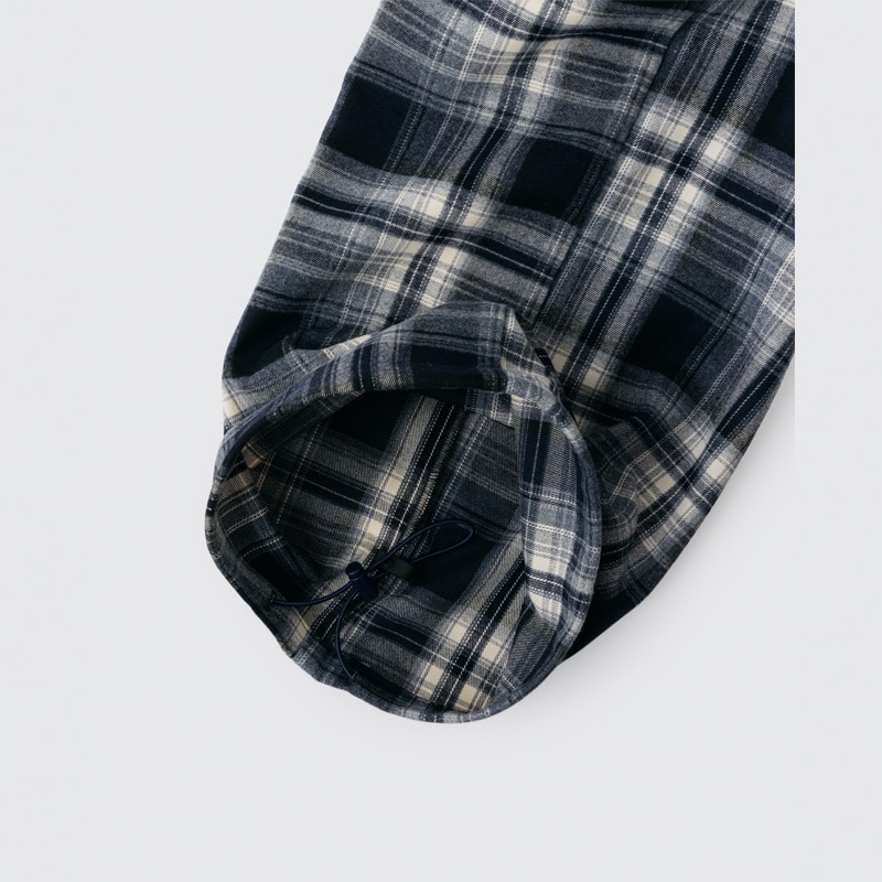 ロング丈でワイドシルエットのチェックパンツ。丈が長めなので、おうち時間にゆったり履くのも、ウエストを一折してジャストサイズで履くのもおすすめです。ウエストを折っても、折り目やシルエットが綺麗に見えるようこだわりました。裾にはドローコードが付いているので、裾丈の調整がしやすい仕様に。マスコットを付けられるベルトループと、スマートフォンが入るサイズのポケットが付いている、機能性も抜群のアイテムです。