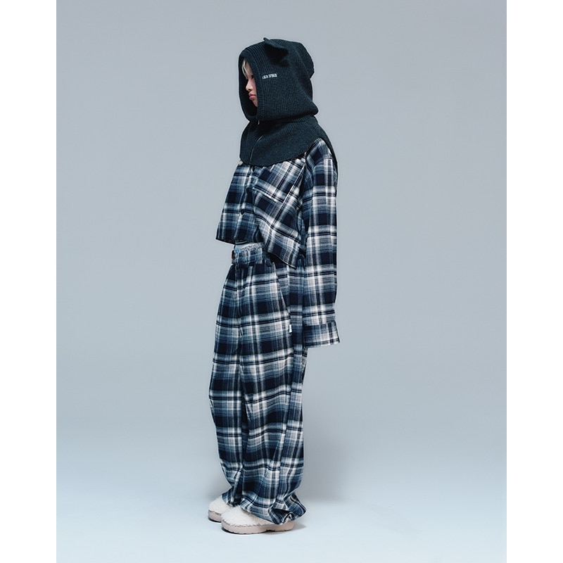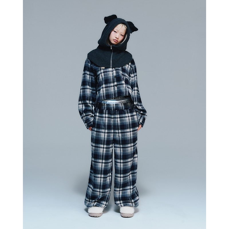 Lazy styles レイジースタイルズ ワイドレッグ チェックパンツ ネイビー