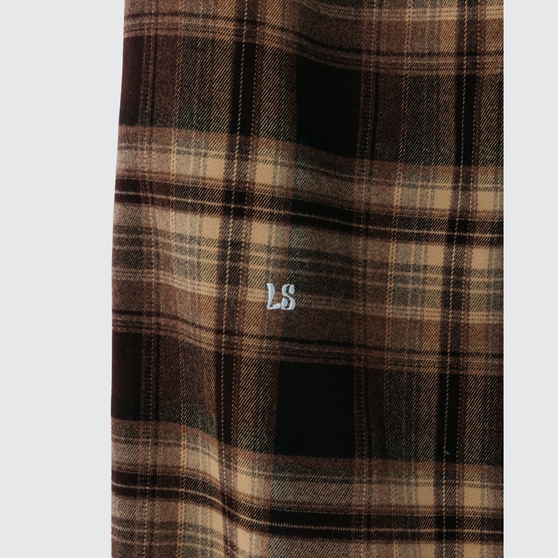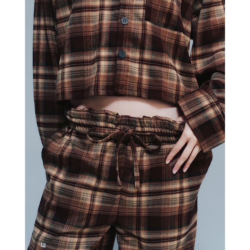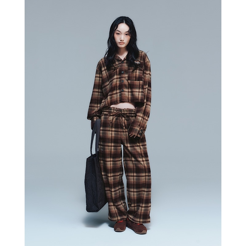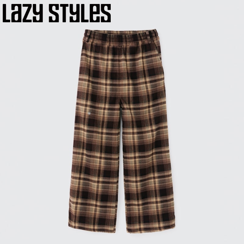 Lazy styles レイジースタイルズ ワイドレッグ チェックパンツ ブラウン