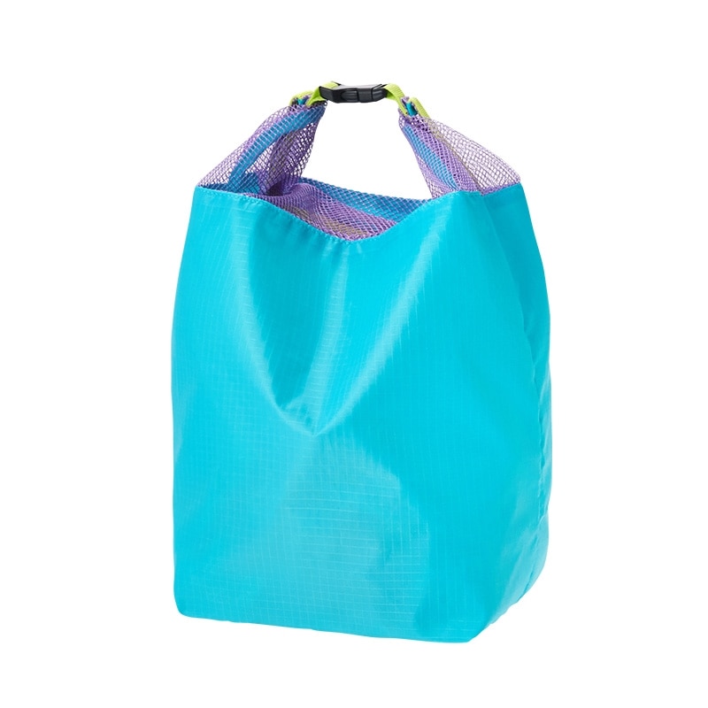 くるっと巻いてコンパクトにできるロールアップ仕様のシューズケースです。バックルで留めればハンドルになります。