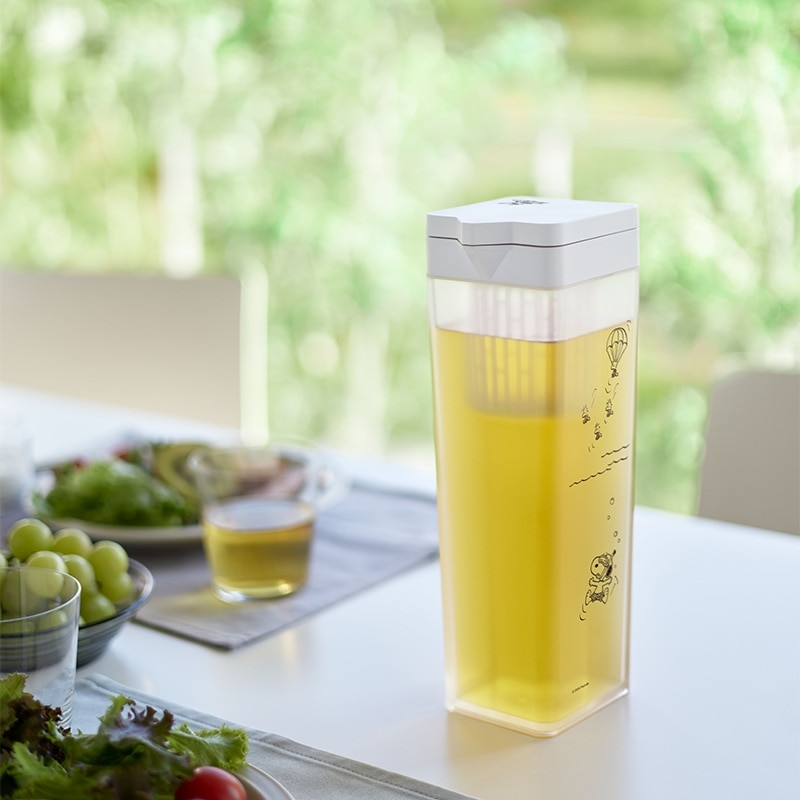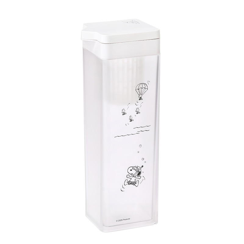 山崎実業「tower」シリーズで人気の、横置きができる冷水筒に愛らしいPEANUTSアートをプラスしたPLAZA限定アイテムです。冷蔵庫の棚に寝かせて置いても漏れない安心の構造で、立てればドアポケットにもすっきり収まるスリムな設計。片手でサッと持ちやすく注ぎやすい形状に加え、取り外しが簡単なティーバッグ入れ付きで、お好みのドリンクをたっぷり作れます。パーツは細かく分解できるうえ、食洗機にも対応しているので毎日のお手入れもラクラク。機能美とスヌーピーの可愛さがひとつになった、これからの季節に欠かせない冷水専用のピッチャーです。
