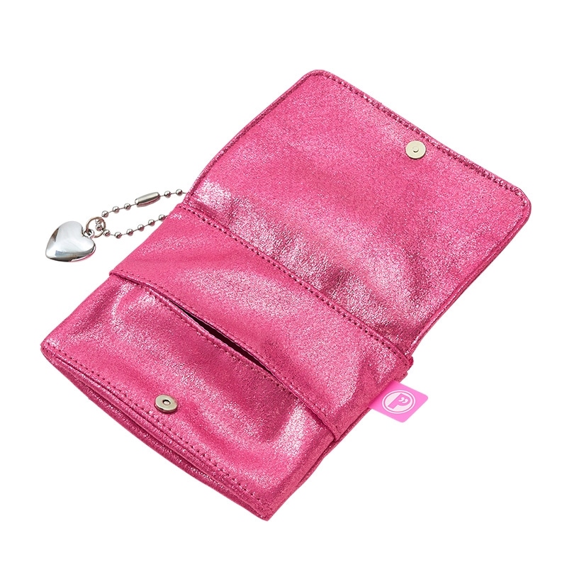 キラキラとしたピンクの生地が可愛いフラップ付きのティッシュポーチです。マチありのファスナーポケットがついているので、リップや目薬など小物をまとめて持ち運ぶことができます。スリムなサイズ感で持ち運びやすく、外出時や旅行先でも大活躍。デイリー使いにもぴったりなアイテムです。