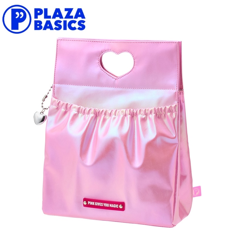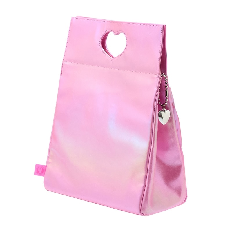 切り抜きハートの持ち手がポイントのランチバッグです。内側には保冷剤などが入れられるメッシュポケット付。キラキラと輝くオーロラ素材がとってもキュートで、持ち歩くだけで気分も上がること間違いなし♪