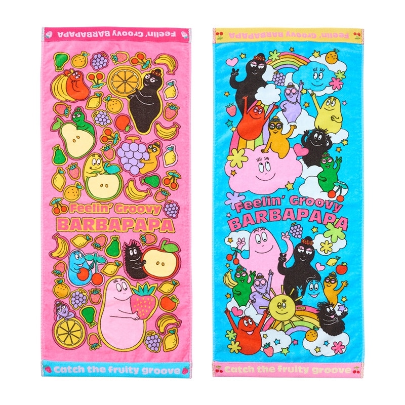 PLAZA限定!バーバパパファミリーとカラフルでフレッシュなフルーツをモチーフにしたフェイスタオルです。柔らかな素材で使いやすさ抜群。カラフルでにぎやかなデザインで、バスタイムはもちろん、スポーツシーンやレジャーシーンでも気分を上げてくれそう♪