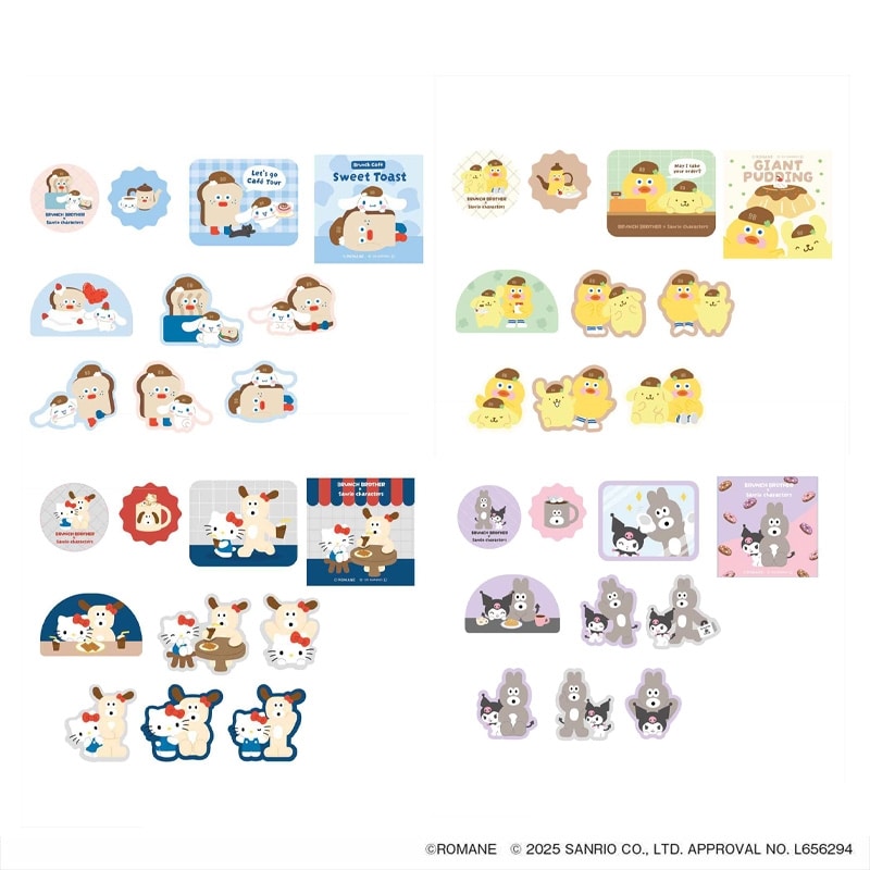 韓国発の人気キャラクター「ブランチブラザー」と「サンリオキャラクターズ」が夢のコラボ!ブランチカフェですごす様子を描いた、オリジナルデザインのニューコレクションです。スペシャルな仲良しコンビのいろんな表情が楽しめる「フレークステッカー」。ブランチカフェでのくつろぎタイムや、仲良しな日常のひとコマまで、愛らしくてちょっぴりシュールな世界観がぎゅっと詰まっています。
