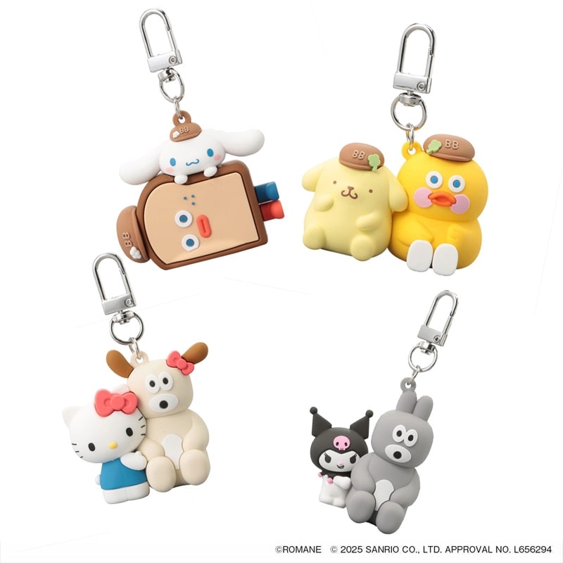 韓国発の人気キャラクター「ブランチブラザー」と「サンリオキャラクターズ」が夢のコラボ!ブランチカフェですごす様子を描いた、オリジナルデザインのニューコレクションです。ぷっくりフォルムがたまらない、立体的でキュートな「PVCマスコットキーホルダー」。やわらかいPVC素材で手なじみもよく、バッグやポーチにつければ、持ち歩くたびに癒される存在に。