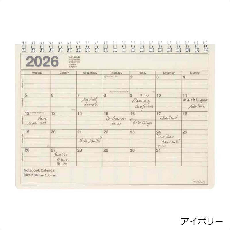 【2026年1月始まり】ノートブックカレンダー B5 マンスリーカレンダー M