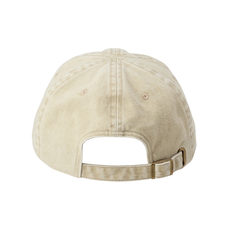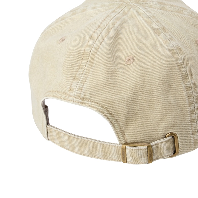 PLAZA限定!何度も洗ったような色落ち加減で、ヴィンテージライクに仕上げた「MEI(メイ)」のキャップです。ぷっくりと立体感を出したフロントロゴは、小さめなのでスポーティになりすぎず、どんなコーディネートにも相性抜群。サイズ調整用のアジャスター金具は、シックなアンティークゴールドカラーです。