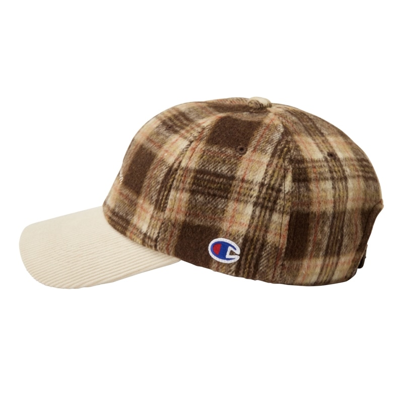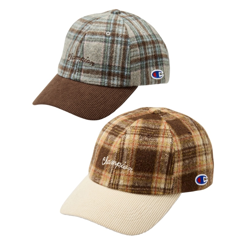 PLAZA・MINiPLA限定!定番アイテムも、ネル素材×チェックならこんなに新鮮。レトロな雰囲気とほっこりとした色使いが今っぽい「Champion(チャンピオン)」のキャップです。つば部分やサイズ調整用ベルトの異素材使いが凝った印象。1点投入でさりげなく季節感を演出してくれます。