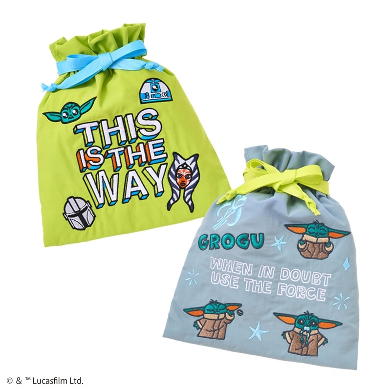 PLAZA限定!『STAR WARS(スター・ウォーズ)』の巾着ポーチです。カラフルなカラーと、刺しゅうデザインの「グローグー」が印象的で日常のアクセントにおすすめです。バッグに入れてもかさばらず持ち運ぶことができます。ご自身用にはもちろん、贈り物としても◎