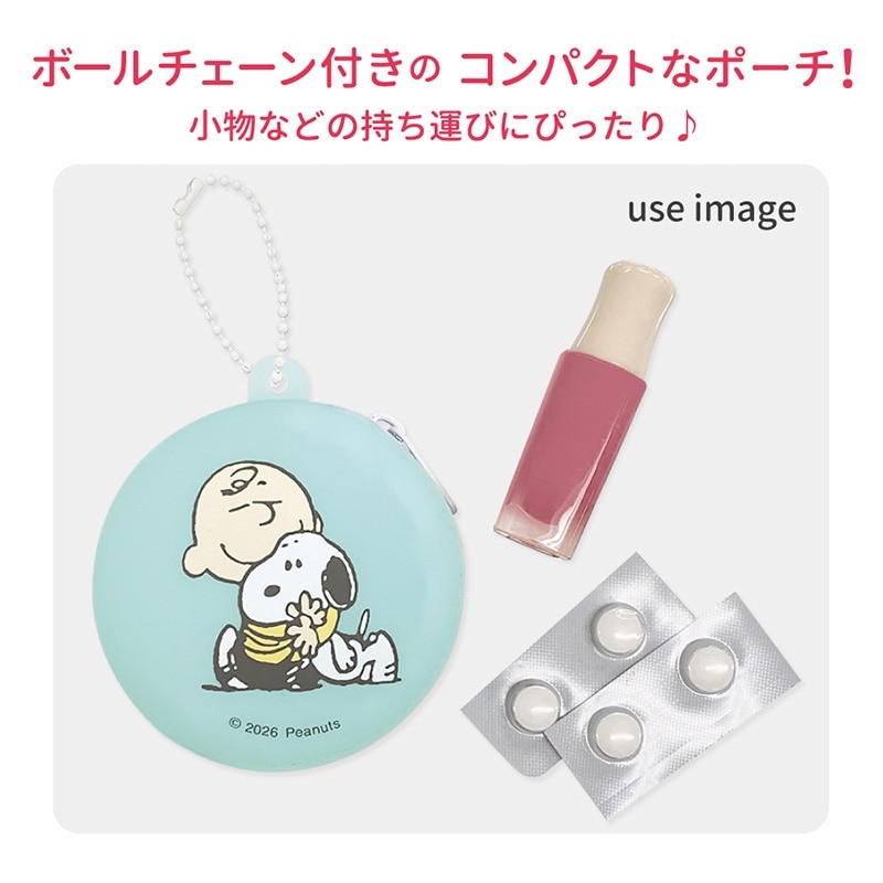 PEANUTSの仲間たちがかわいい、ボールチェーン付きのコンパクトな手のひらサイズのポーチです。お薬やリップなど小物を持ち運ぶのにぴったり♪ラインナップは全8種。アソートのためデザインは選べません。どれが入っているかはお楽しみ!
