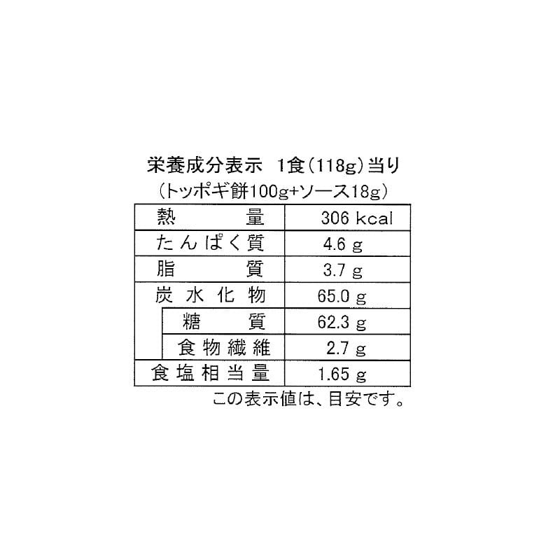 118g(トッポギ餅100g、ソース18g)