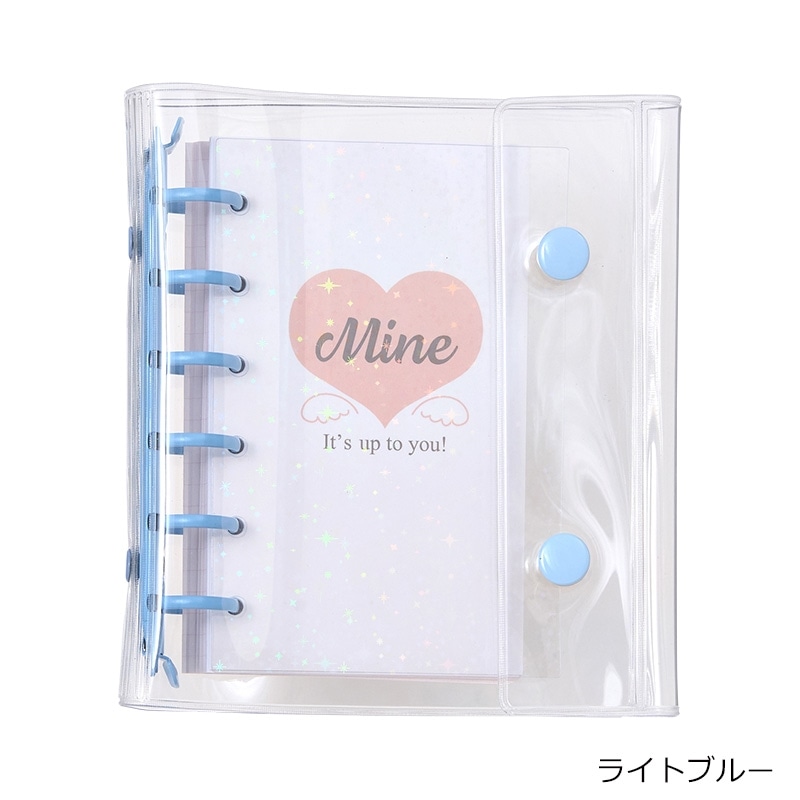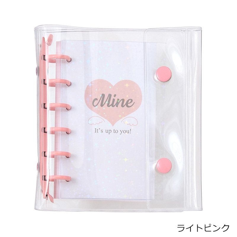 「Mine」シリーズのキラキラ台紙やリフィルが入ったバインダーセットです。お気に入りのシールを貼ることで、自分だけのオリジナルの表紙を作ることができます。キラキラ台紙1枚、シール台紙5枚、方眼柄リフィル20枚入り。