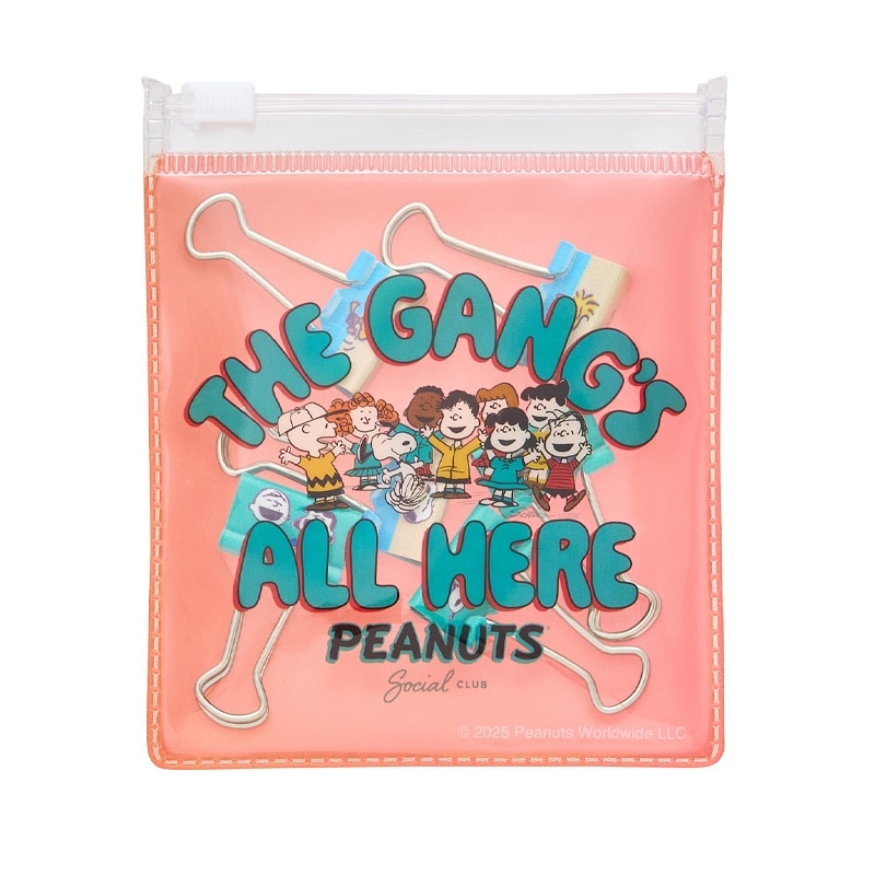 ジップケースに入ったスヌーピーのダブルクリップ。書類や資料をまとめるのに便利なアイテムです♪保管用にも他の物を入れても便利なZIP付ケースに入っています。2柄各3個、全6個入りです。