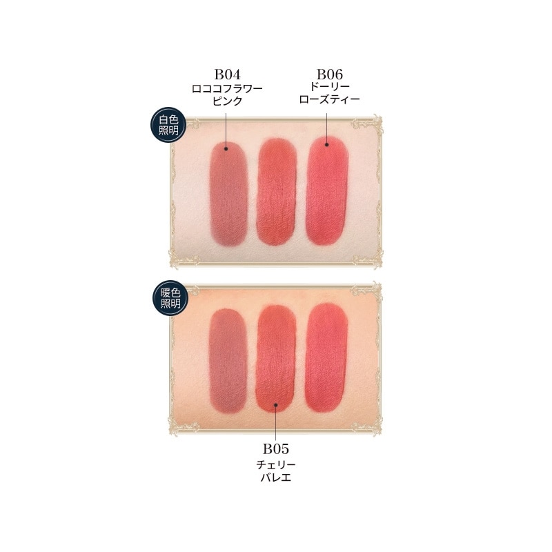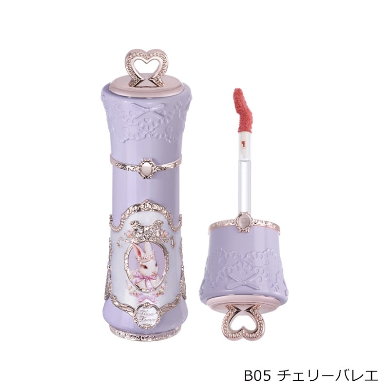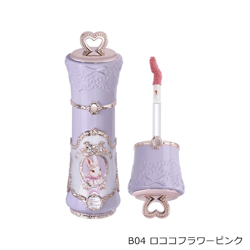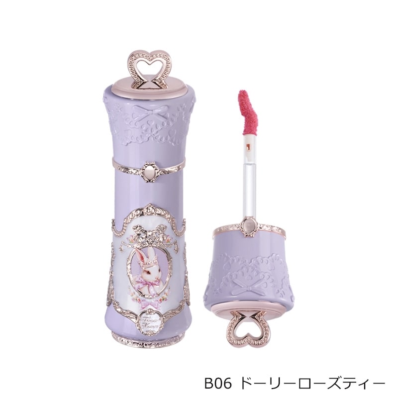フレンチロココと「不思議の国のアリス」の世界観に着想を得たボーンコルセットデザイン容器がお洒落なマットリップ。ふわふわ質感のリップが唇表面をなめらかに整えて、ソフトマットの上品な仕上がりに。容器上部のハート部分にチャームを付ければ、オリジナルデコレーションも楽しめます。