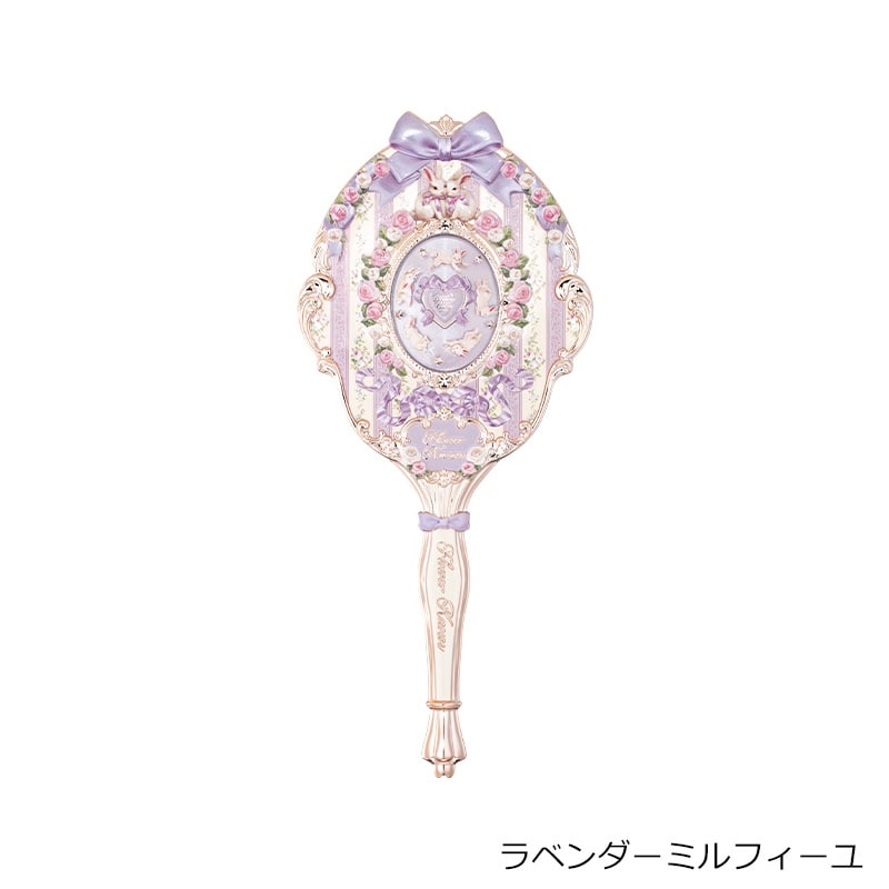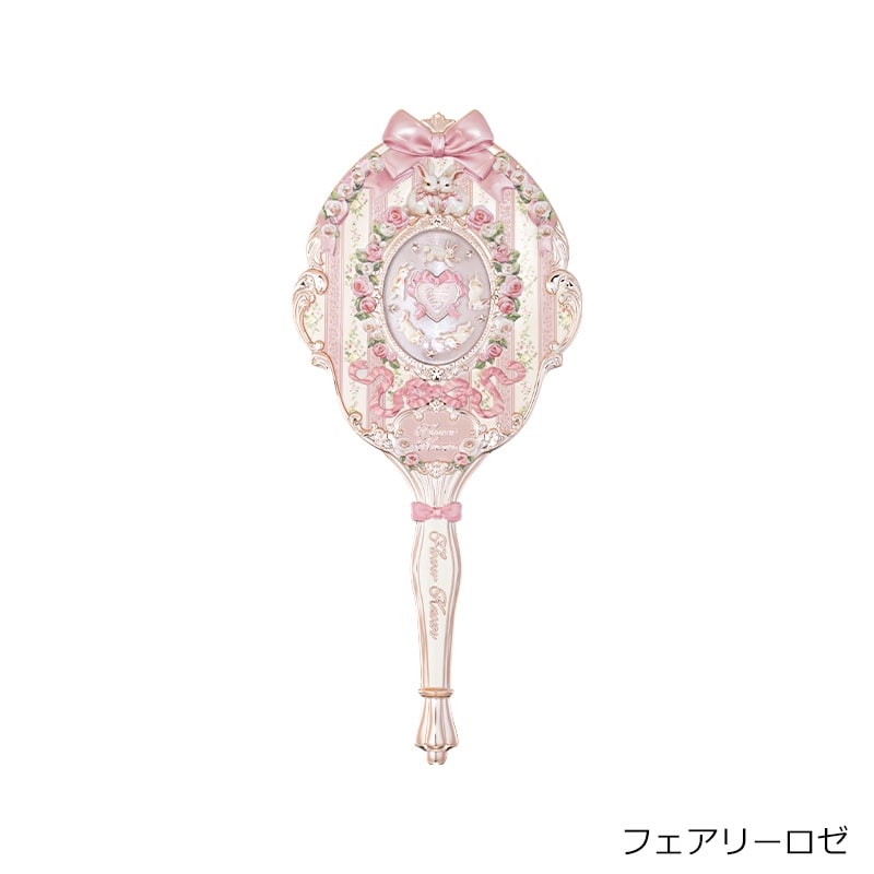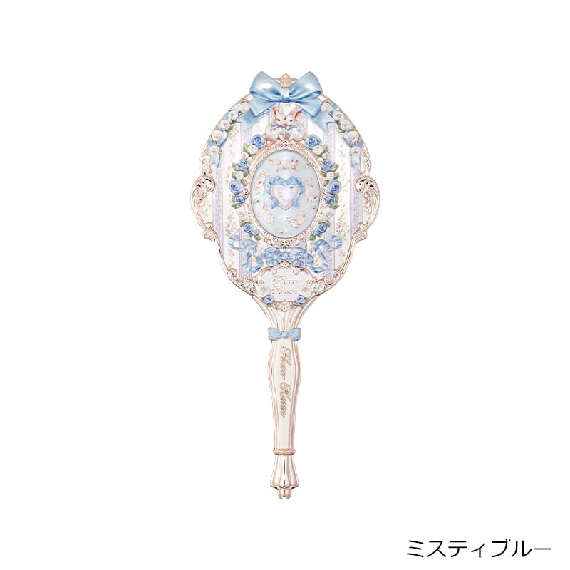 金メッキ加工のフレンチロココ調デザインに「不思議の国のアリス」の世界観を落とし込んだ、優美でお洒落なハンドミラー。フラワーウォール柄に可愛い白うさぎをあしらったロマンティックなデザインで、メイク時間を贅沢なひと時に変えてくれます。