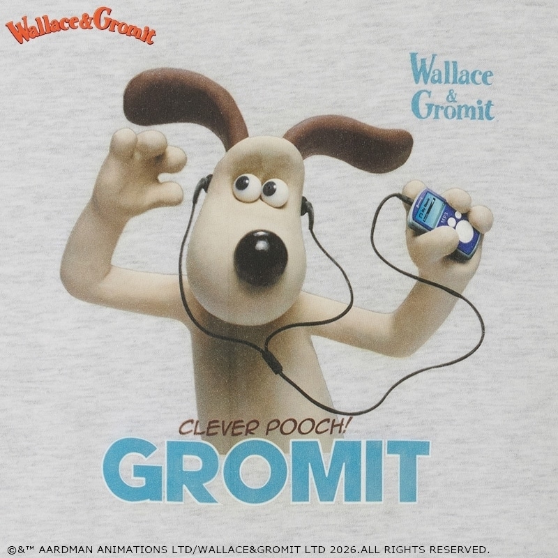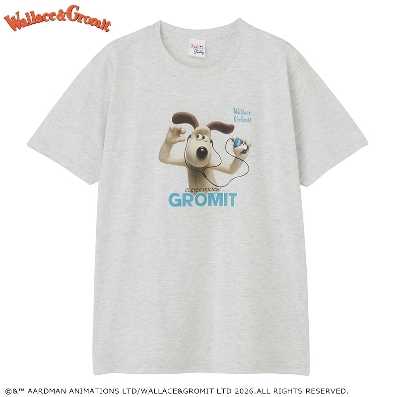PLAZA限定!クレイアニメーションの傑作『ウォレスとグルミット』から、ノリノリで音楽を楽しむ「グルミット」のTシャツが登場!「グルミット」のコミカルでキュートな姿が魅力です。ベースはメランジアッシュカラーで、こなれ感を演出。大好きな音楽と一緒におでかけしたくなるアイテムです。