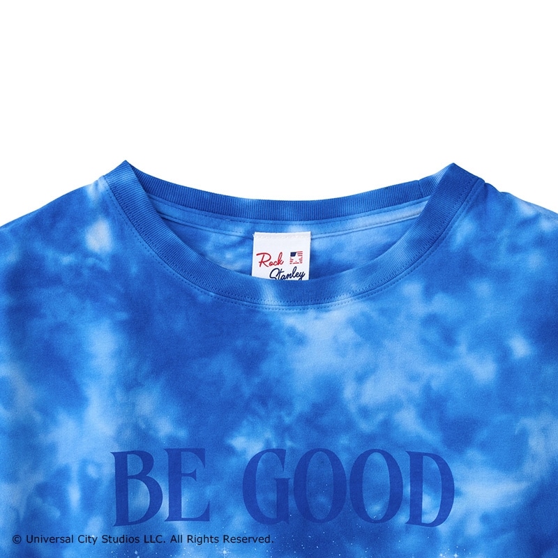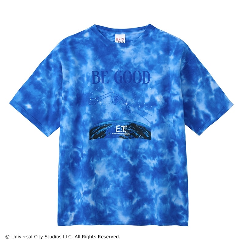 PLAZA限定!映画史に残る不屈の名作『E.T.』の世界観を、タイダイ染めで鮮やかに表現。ファン必見の1枚に仕上げました。きらめく星空と地球に、名セリフである「BE GOOD(いい子でね)」をレイアウト。インパクトのある総柄デザインながら、ブルートーンで統一されているので着こなしやすいのも魅力です。