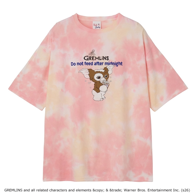 PLAZA限定!映画『GREMLINS(グレムリン)』のキャラクター、「ギズモ」のTシャツが登場。ピンクとイエローのタイダイ染めボディに、ポップコーンを頬張る愛らしいギズモの姿が絶妙にマッチ。「真夜中に餌を与えないで」というルールが、ファン心をくすぐるアクセントになっています。