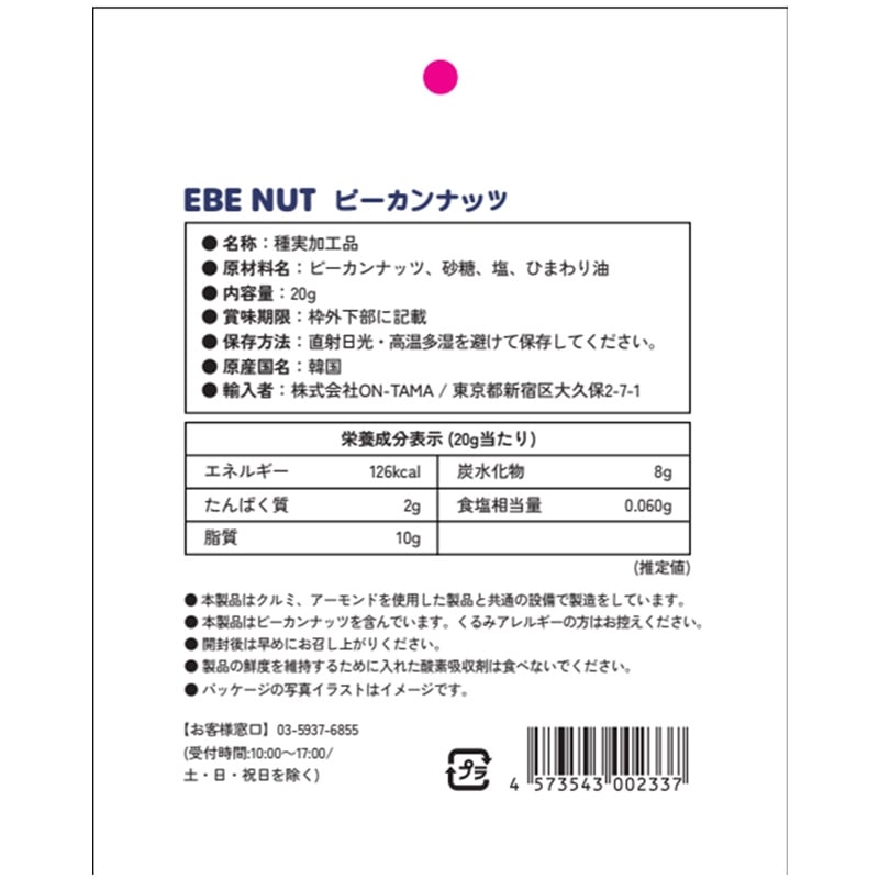 ヘルシーでおしゃれな韓国のナッツブランド「EBENUTS」から、一番人気のピーカンナッツが入荷しました。 香ばしいピーカンナッツをカラメルでコーティングし、カリッとした食感とナッツの風味、キャラメルのほどよい甘さが楽しめます。 ちょっとしたギフトにもおすすめのアイテムです。