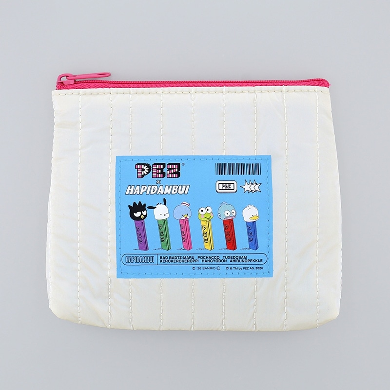 サンリオの人気キャラクターユニット「はぴだんぶい」と、キャンディブランド「PEZ(ペッツ)」がコラボレーション。ポップなカラーがアクセントになったティッシュポーチです。リップや目薬など小物をまとめて持ち運ぶことができます。裏面にはティッシュも入るのでお出かけや学校、職場などの日常使いにもおすすめです。
