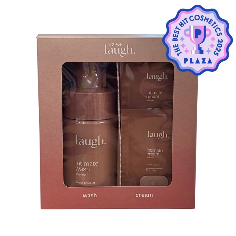 PLAZA他1社限定の数量限定アイテム!デリケートゾーンケアブランド「laugh.(ラフドット)」から、上品でフェミニンな“スイートブーケの香り”のギフトBOXが限定登場。泡タイプの弱酸性ソープで洗ってクリームでうるおいを与える、の2ステップで、デリケートゾーンを清潔に保ちながら気になるニオイ(※1)やくすみ(※2)の原因にアプローチ。デリケートゾーンの保湿に使用できるクリームが4包入ってお値段据え置きのお得なセットです。