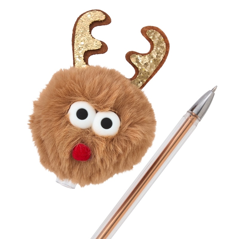 クリスマス仕様のポンポン付きボールペンです。ふわふわ素材とキラキラペン軸が、あなたの日常に彩りをプラスします。サンタ服・ディアー・スノーマンの3種類。使うたびに笑顔になれるアイテムです♪インクはブラックです。
