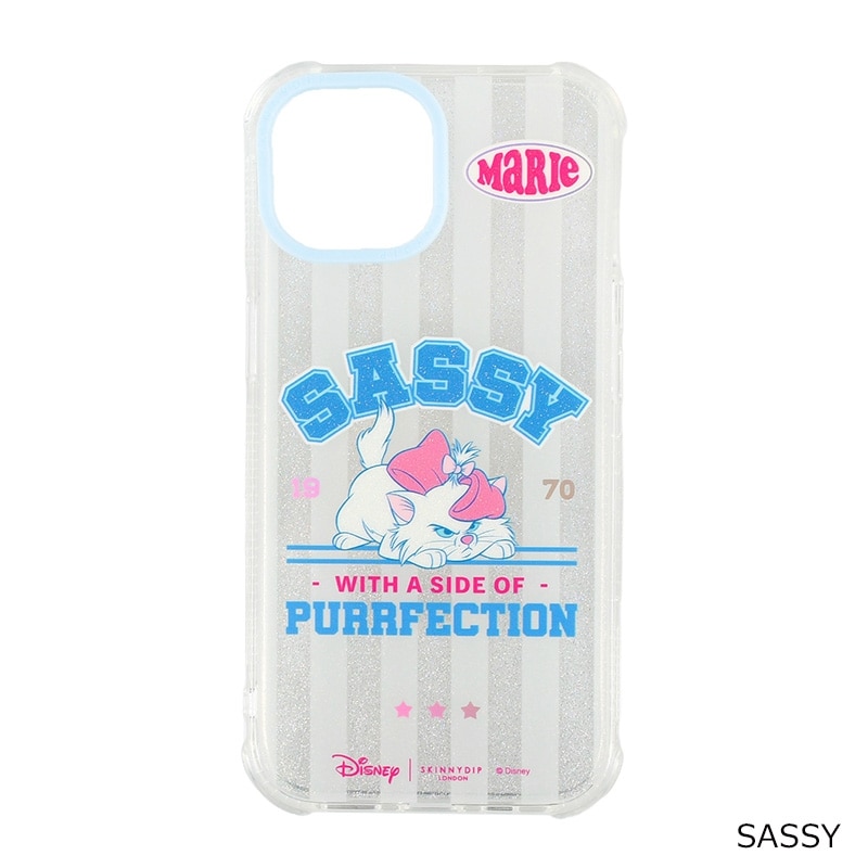 ロンドン生まれのファッション雑貨ブランド「SKINNYDIP(スキニーディップ)」とDISNEYの「おしゃれキャット」に登場するマリーがコラボレーションしたiPhone15用ケース。落ち着いたデザインなので大人でも使いやすいアイテムです。