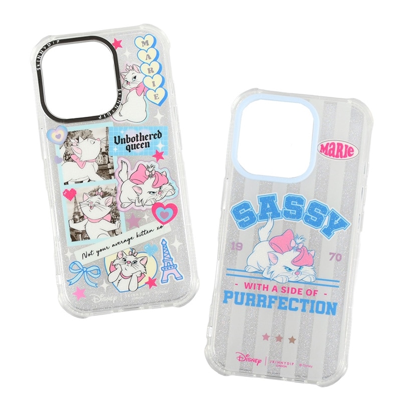 ロンドン生まれのファッション雑貨ブランド「SKINNYDIP(スキニーディップ)」とDISNEYの「おしゃれキャット」に登場するマリーがコラボレーションしたiPhone15Pro用ケース。落ち着いたデザインなので大人でも使いやすいアイテムです。