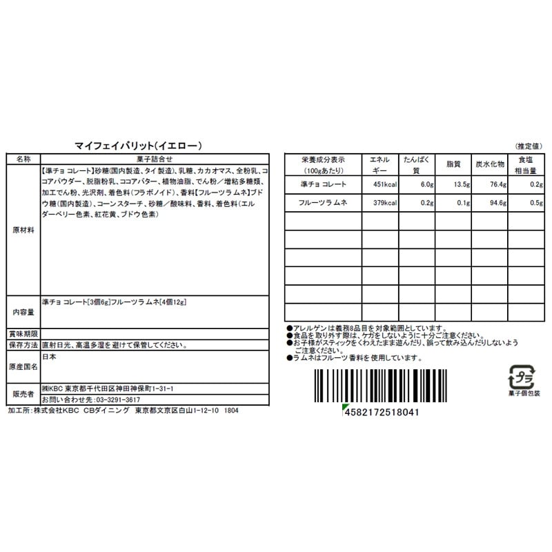 【内容量】準チョコレート(3個6g)、フルーツラムネ(4個12g)