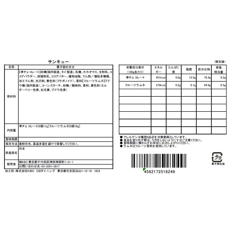 【内容量】準チョコレート(6個11g)、フルーツラムネ(6個18g)