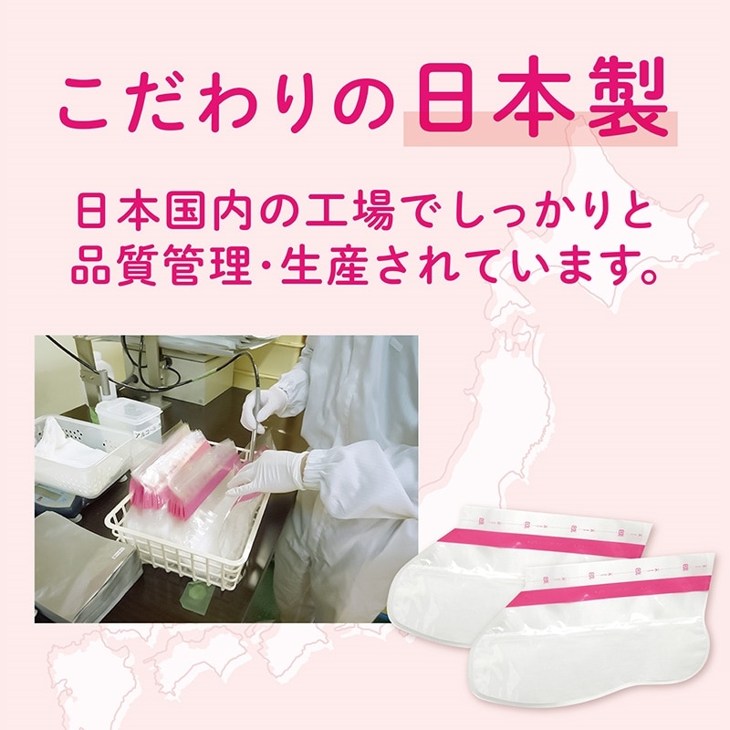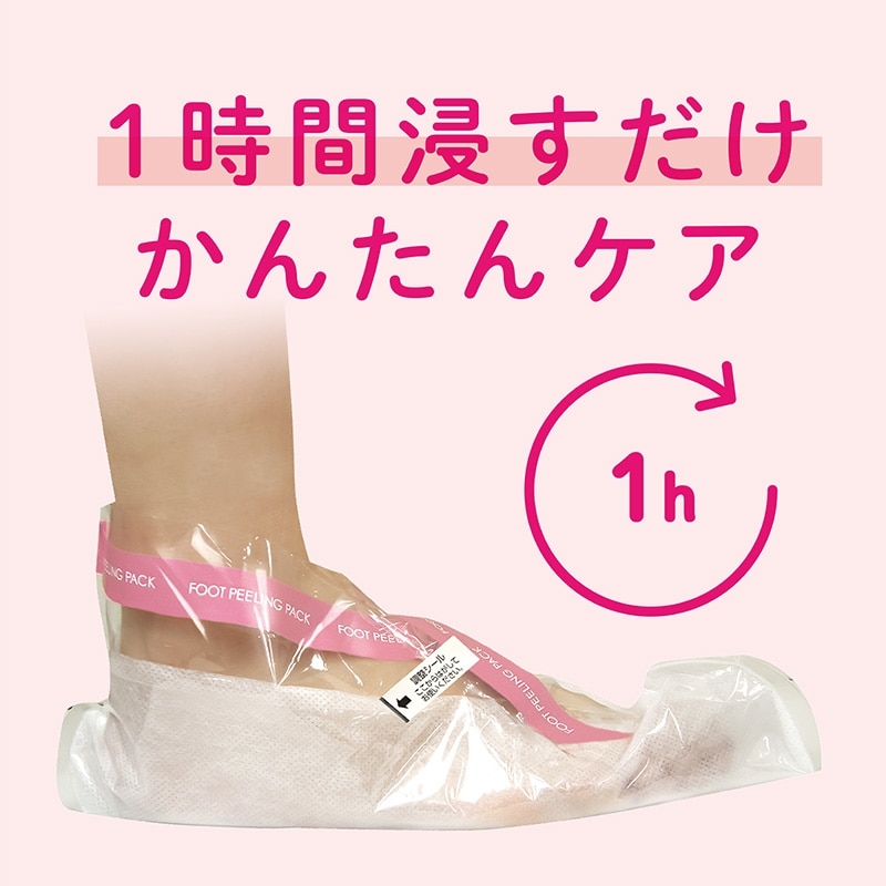 こすったり削ったりせず、履くだけでツルツルの足裏に!足の不要な角質を手軽にケアできるフットピーリングパック。角質柔軟剤の入った足袋を1~1時間半履くだけでOK。底面に不織布が入った滑りにくい設計なので、ケア中も歩くことが可能。約5日~7日で古い角質の表面が乾燥しはじめ、摩擦などの影響で自然に目立たなくなり、すべすべとした肌触りへ導きます。対応サイズは27㎝まで。清涼感のあるミントの香り。