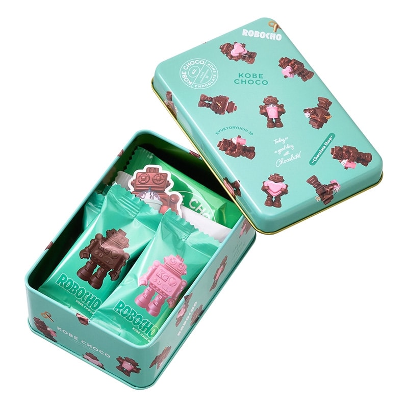 「KOBE CHOCO」のマスコットキャラクター“ロボチョ”がデザインされた、缶入りのアソートセットです。ミルクとストロベリーのミニロボチョに加え、KOBE CHOCOのロゴをかたどった、ミルクとホワイトのメダルチョコサブレを詰め合わせました。北海道産小麦全粒粉とバターを使用したサブレは、チョコレートとの相性も楽しめます。オリジナルステッカー付きで、食べ終わった後の缶は小物入れとしても使える、コレクションしたくなるアイテムです。