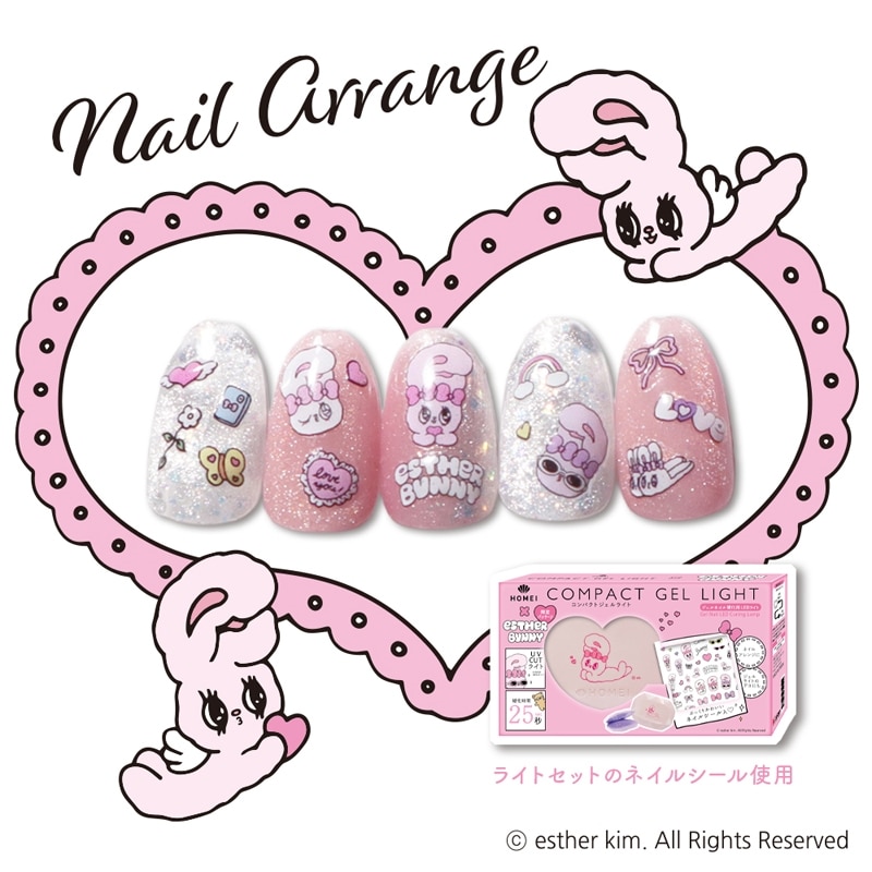 数量限定アイテム!「ホーメイウィークリージェル」のジェルネイル用ライトが、ポップでガーリーなウサギのキャラクター“エスターバニー”とコラボレーション。限定デザイン&パッケージで登場です。ぷっくり可愛いネイルシールも付いてきます。持ち歩きにも便利なコンパクトサイズ。