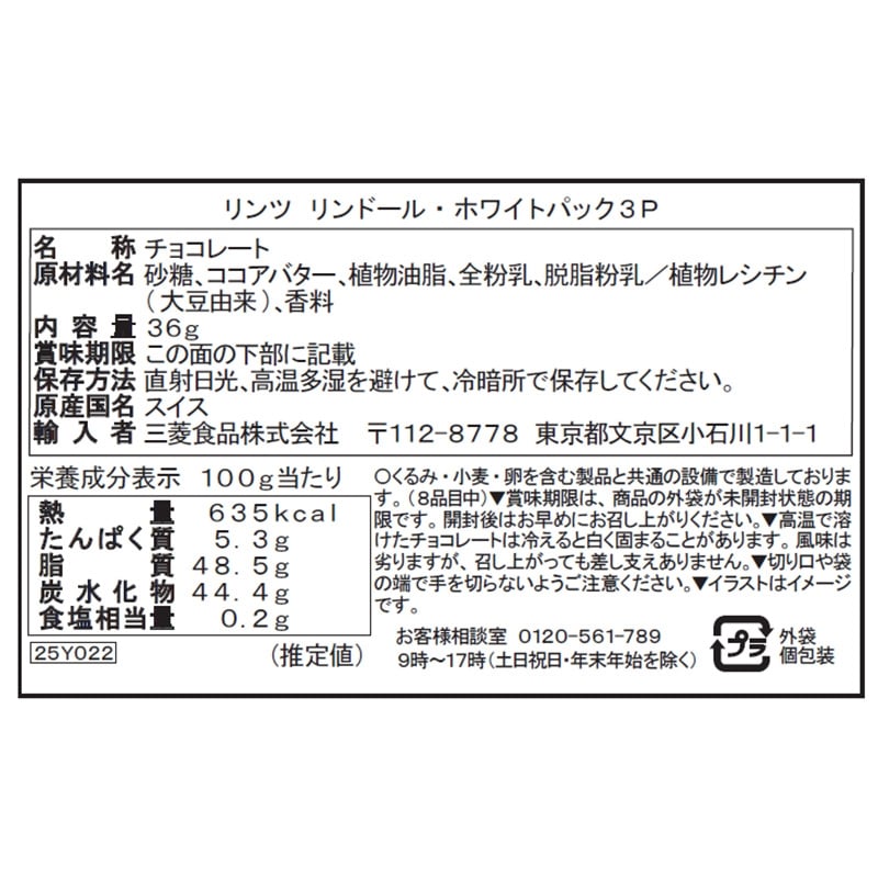 Lindt リンツ リンドール ホワイトパック 3個入り