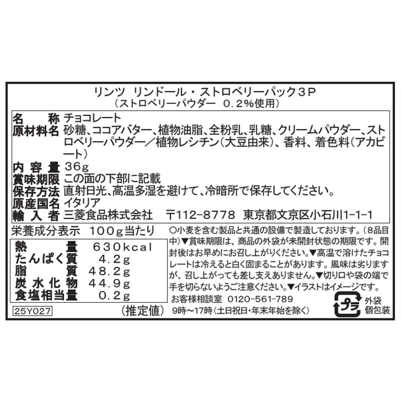 Lindt リンツ リンドール ストロベリーパック 3個入り