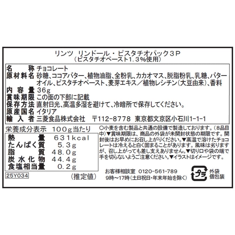 Lindt リンツ リンドール ピスタチオパック 3個入り