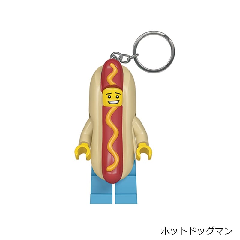 LEGOのキャラクター型のキーライトです。お腹のボタンを押すと足の裏にあるLEDライトが点灯し、離すと消えます。