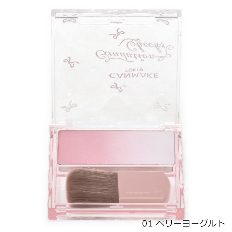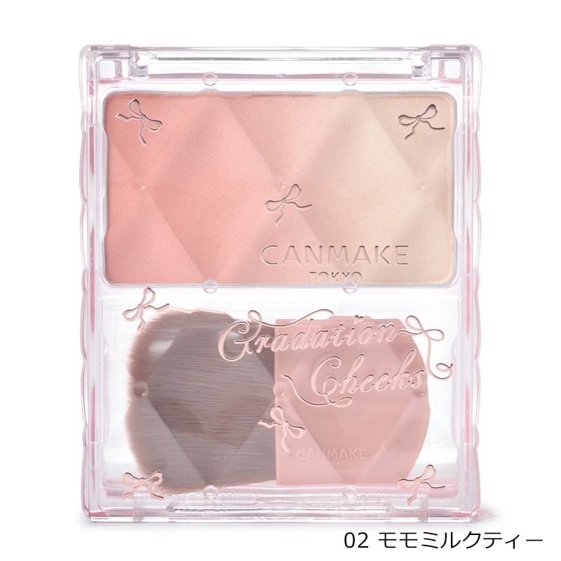 これ1つで血色感(※)も立体感も演出できる、チーク&ハイライトのグラデーションカラー。ふんわりにじみ出るような発色のチークと繊細パール配合ハイライトにより、顔全体に統一感のある3D立体メイクが完成。1度塗りでもキレイに発色してムラになりにくいので、チーク初心者さんでも簡単に自然なグラデーションが作れます。